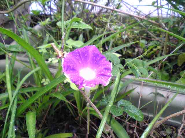昨年、猫股亭からやってきた朝顔の名残かこんな小さな朝顔が一輪咲いてました。