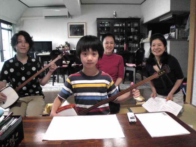ホーリーさんと涼君のお三味線で「宝船」のお稽古をする佐さんと華さん。