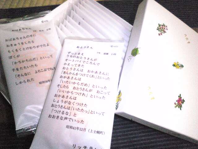 可愛いのはサイロをかたどったクッキーを包装してある一個一個に印刷されてる小学生の詩です。
