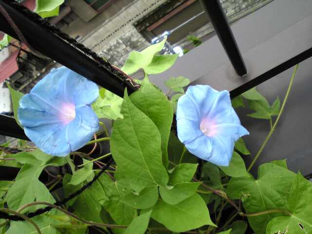 予想より早く清々しい青い花が二輪開きました。