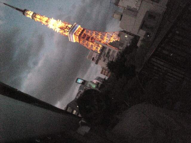 東京タワーを携帯で撮る祥さん。