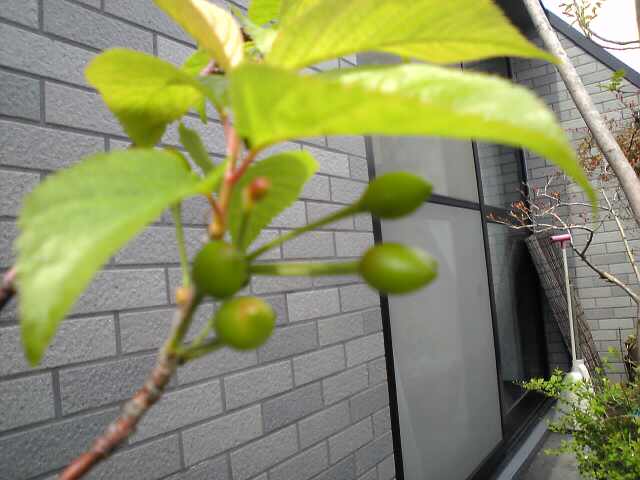 ベランダの桜の枝にこんな可愛いさくらんぼが出来てました。