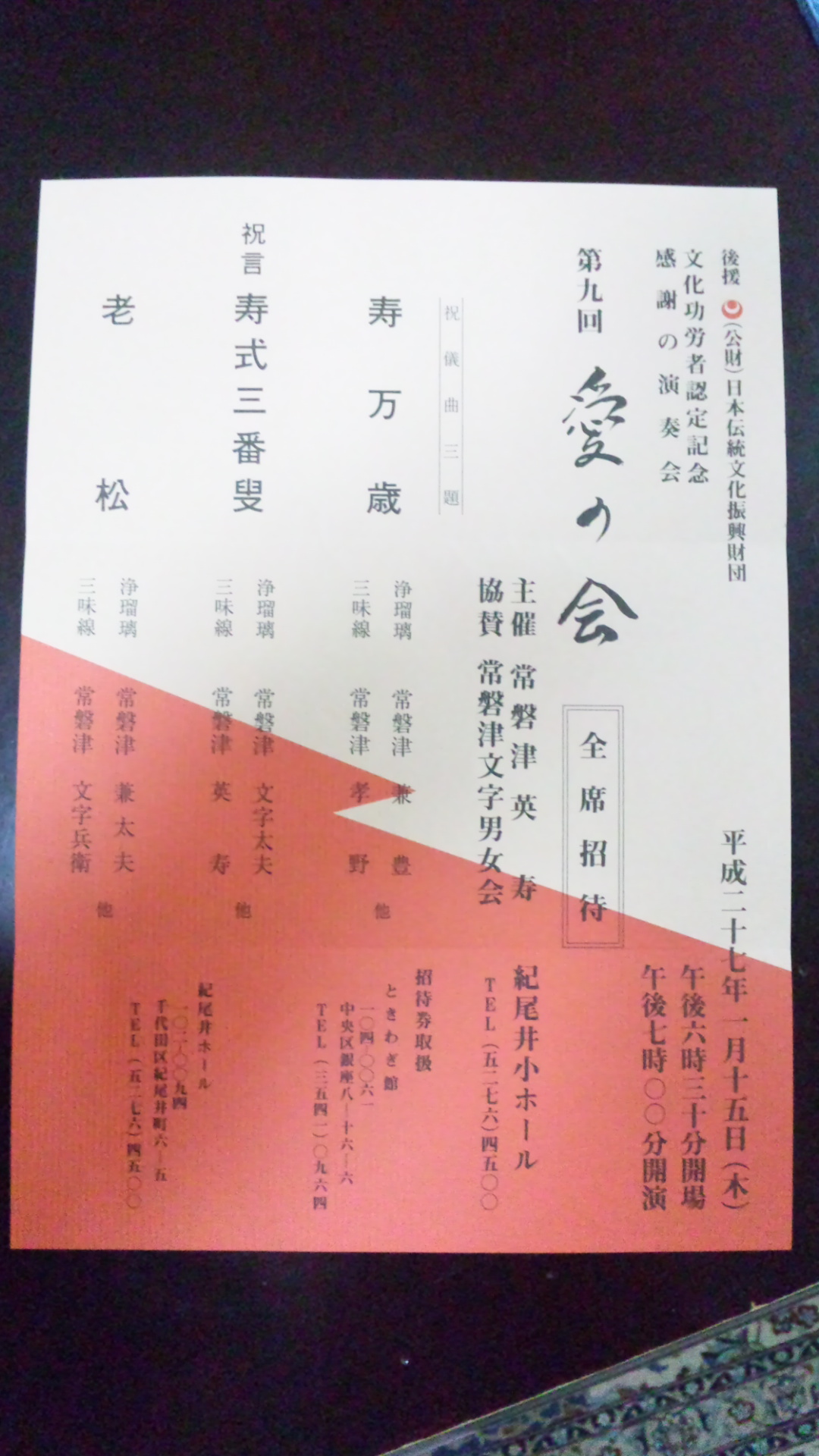 「若芝会」「年忘花吹寄Ⅱ」と怒涛の日々を過ごした皆様に安穏な年の瀬を送っていただきたい私としては「うちわ鳳年会」では全てお三味線は私が弾くと決めましたので例え途中で唄が詰まっても例え唄が暴走したとしても上手く合わせて上手に着地させて差し上げようと思ってる次第であります。