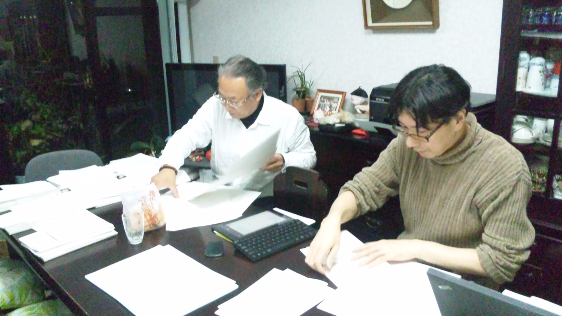 お仕事帰りの柳さんがプログラムの校正を取りにきてくださいました。