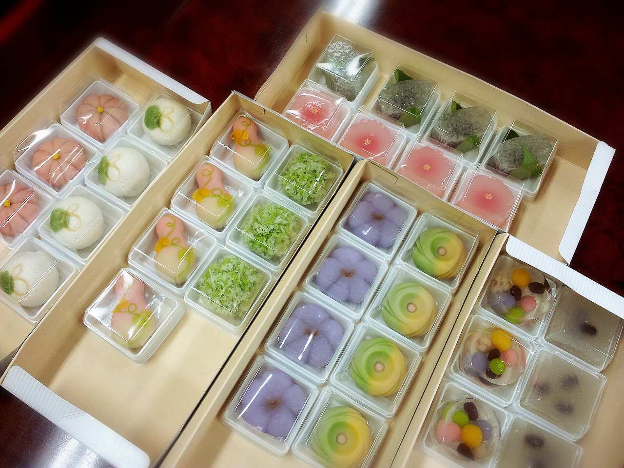 少しずつお裾分けしたので隙間が空いてますが、さすが塩野さんの生菓子は季節感いっぱいで美しいです。