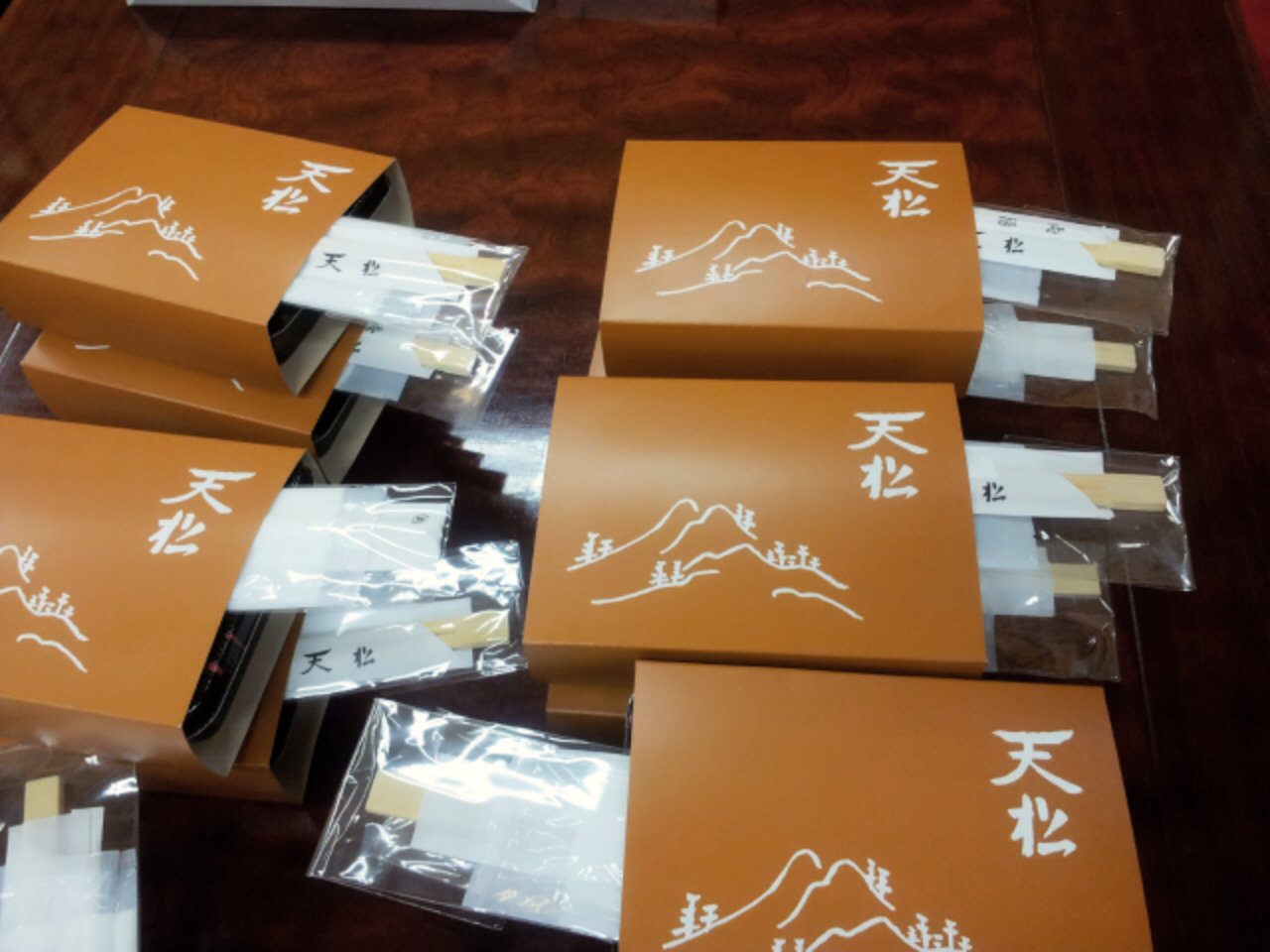 本番前日の上げ浚いに皆さんに食べていただこうと天松さんの天丼と赤坂「塩野」さんの生菓子を手配いたしました。