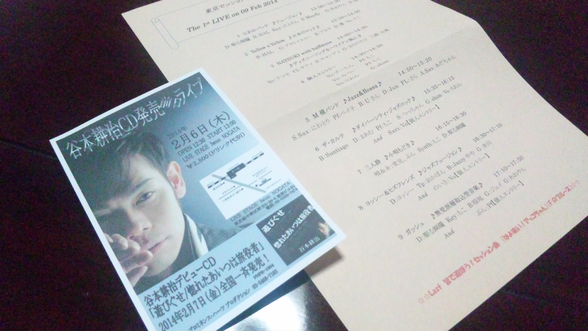 「谷本耕治CD発売前日ライブ」 12:30開場 13:00開演です。