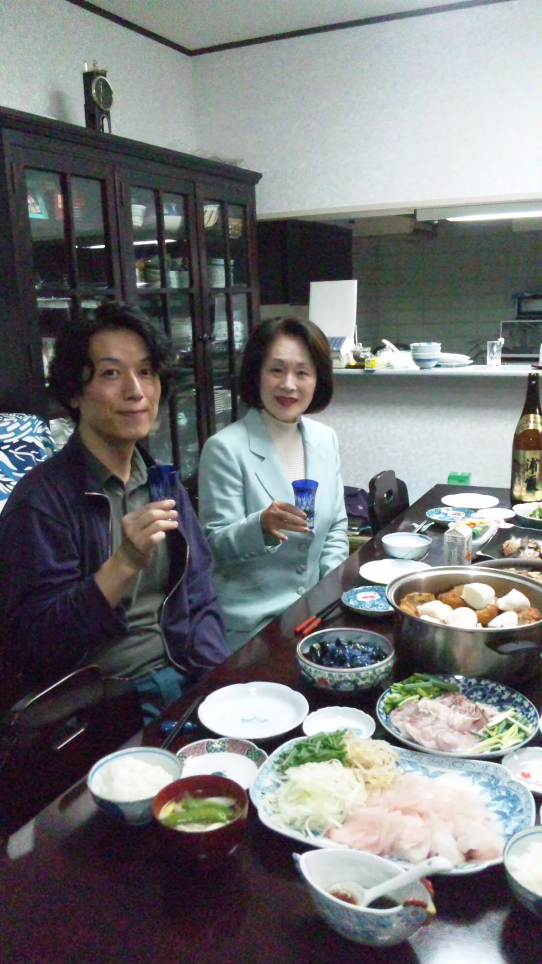 お三味線屋さんの菊岡さんが修理のお三味線を届けてくださった時は我が家の台所は準備中の居酒屋のようになっておりました。