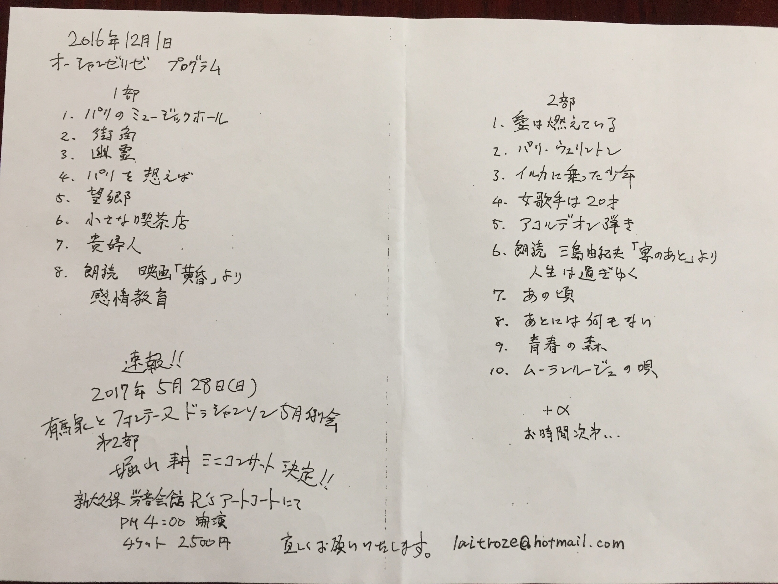 会が終わったばかりで皆さんが新しい曲を入れることになり今日は全く時間が足りない状態になりました。