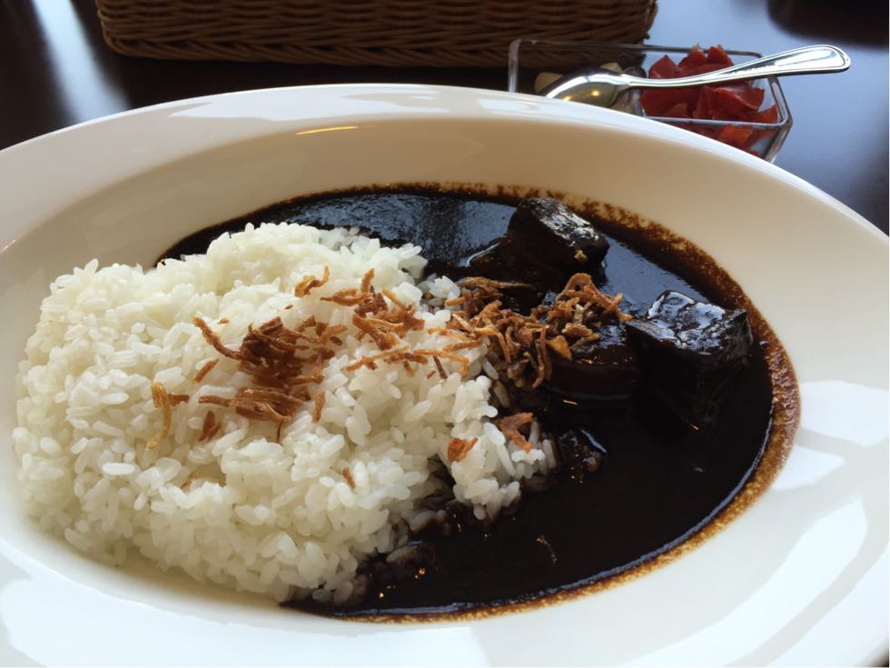 カシャリは三田病院レストランから眺める東京タワーと診察が終わって食べた遅い昼食のカレーライスです。