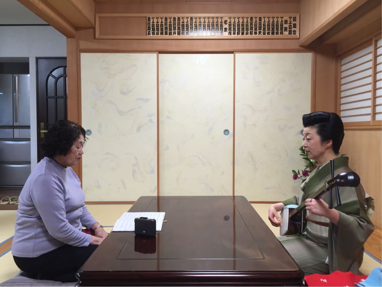 春日会館の一階と三階でそれぞれ組んでる方と浚ってから二階の広間で栄芝先生の前で 演奏をご覧いただくのですが皆様一様に「本番より緊張する」とおっしゃいます。