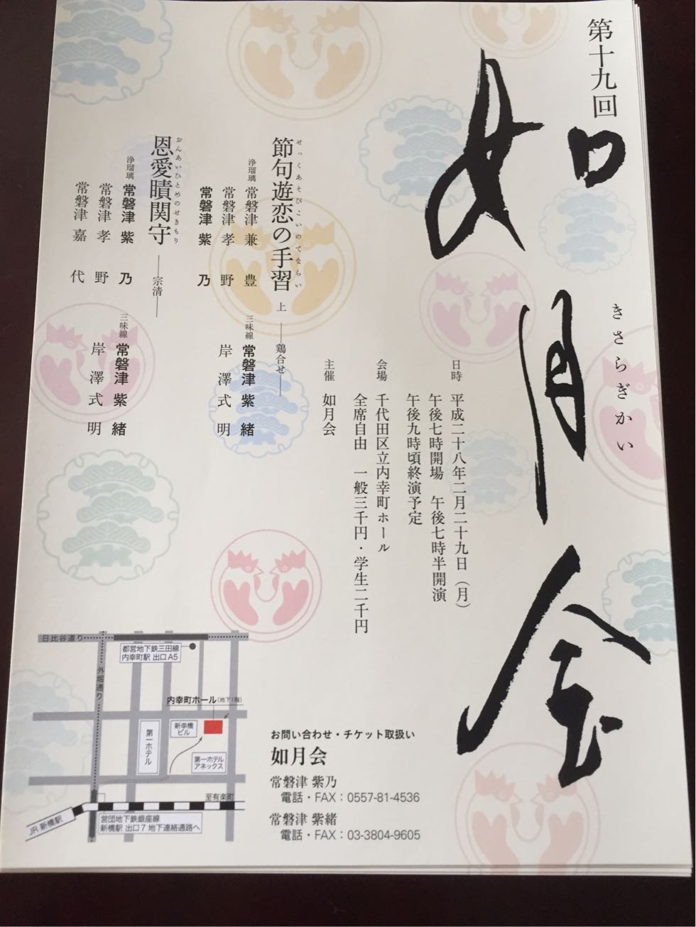 常磐津文字兵衛先生門下の紫緒さんと紫乃さん主催の「如月会」。