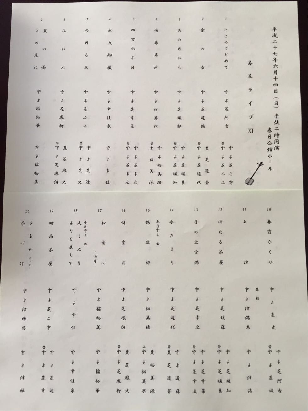 「若草ライブ」出演を決めたのが遅かったのでお稽古時間に不安がありますがご都合がつく限りお稽古場に足を運んで合わせ稽古に努めていただきたいと思います。